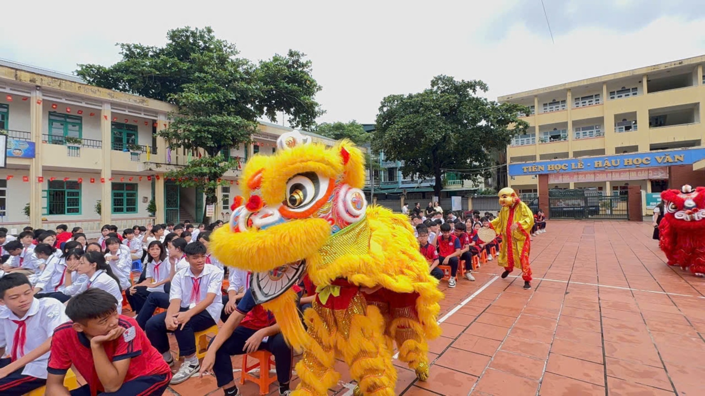 🦁Mở màn chương trình là tiết mục múa lân đầy sôi động của tập thể lớp 9A2. Tiếng trống rộn ràng, những bước nhảy khỏe khoắn và linh hoạt đã khuấy động bầu không khí, mang đến niềm hứng khởi và niềm vui lan tỏa khắp sân trường.