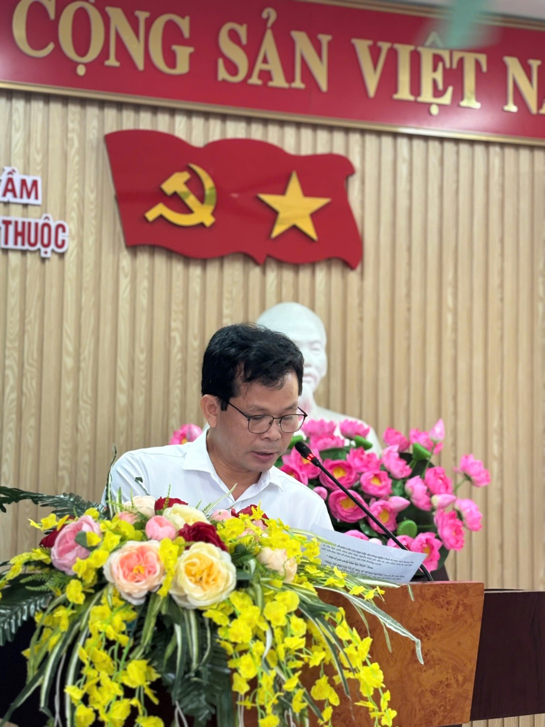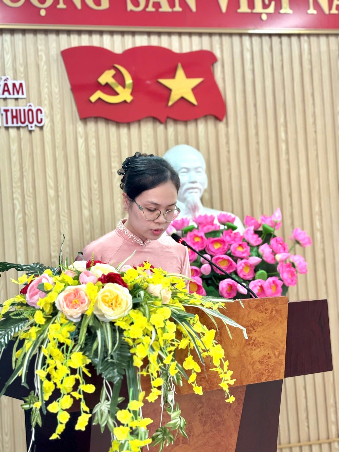 Tham luận: “Chăm sóc sức khỏe – Xây dựng môi trường học đường lành mạnh” – Đ/c Trương Thị Diệu Thúy, Tổ trưởng tổ Văn phòng, nhân viên y tế. Đề xuất tăng cường tuyên truyền sức khỏe học đường, phối hợp giữa nhà trường – phụ huynh – y tế, đảm bảo vệ sinh an toàn thực phẩm và môi trường học tập.